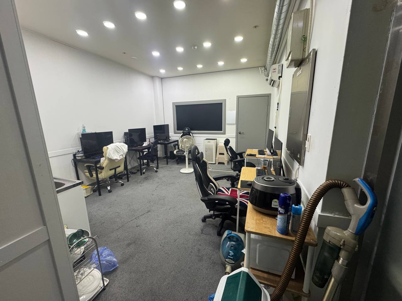 처음 시작할 때 깔끔하게 인테리어 했고, 천장 보시면 아시겠지만, 환기 시스템에 신경을 많이 썼습니다.